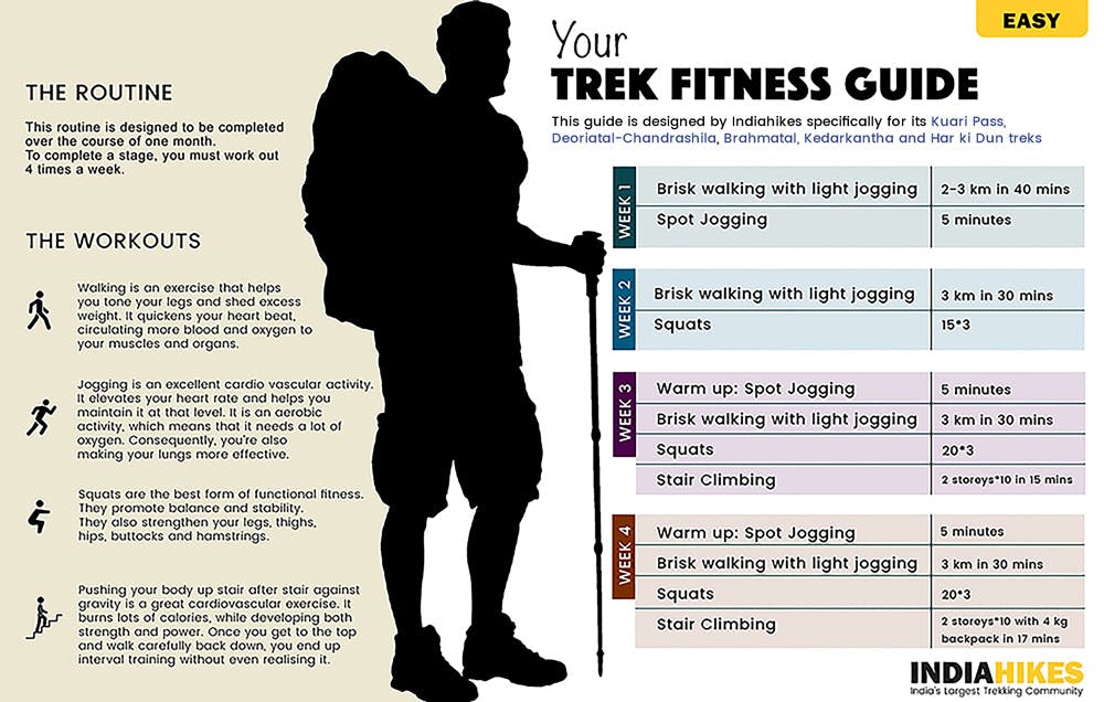 Refer this chart to plan your fitness routine for easy-moderate treks