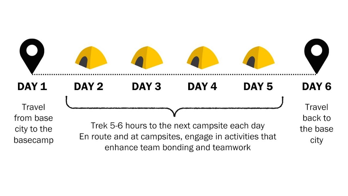 So consequences that you may face for not working cohesively as a team are tangible and not just simulated. It is important to note that this is markedly different from usual offsite experiences that may occur in a controlled environment. In this case, all participants will find themselves operating outside of their comfort zone, in an unfamiliar environment, without the safety net of a "bubble" that exists in typical offsites.